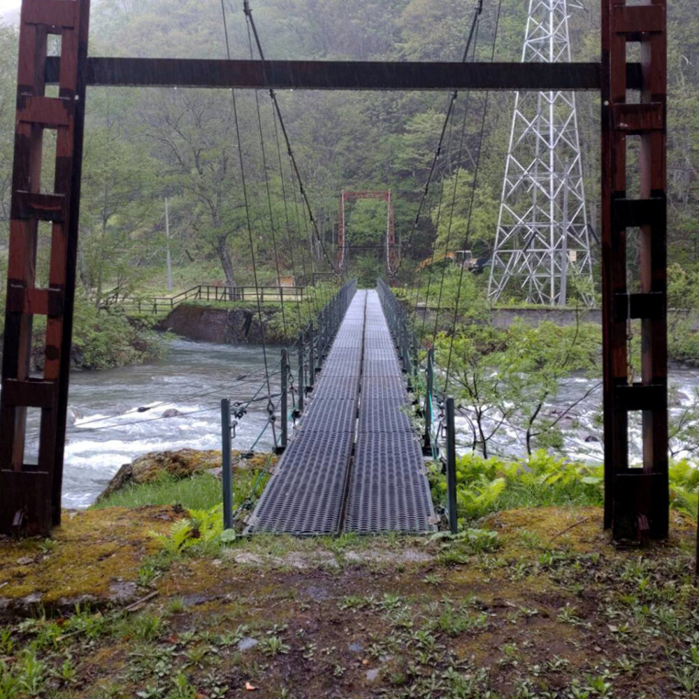昨日(5/15)東北電力西野発電所の関川にかかる吊り橋が復旧されました。