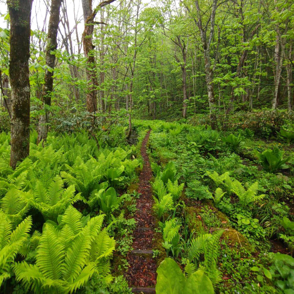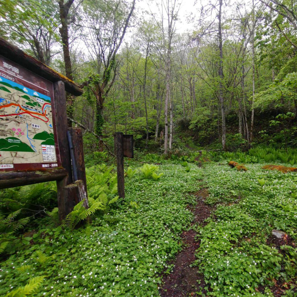 この時期のあまとみトレイル、長野市街地周辺など標高の低いところでは森も初夏の装いですが、雪がとけたばかりの大ダルミ周辺から笹ヶ峰にかけては、ミズバショウやショウジョウバカマなど早春の花々もまだ見る事ができます。